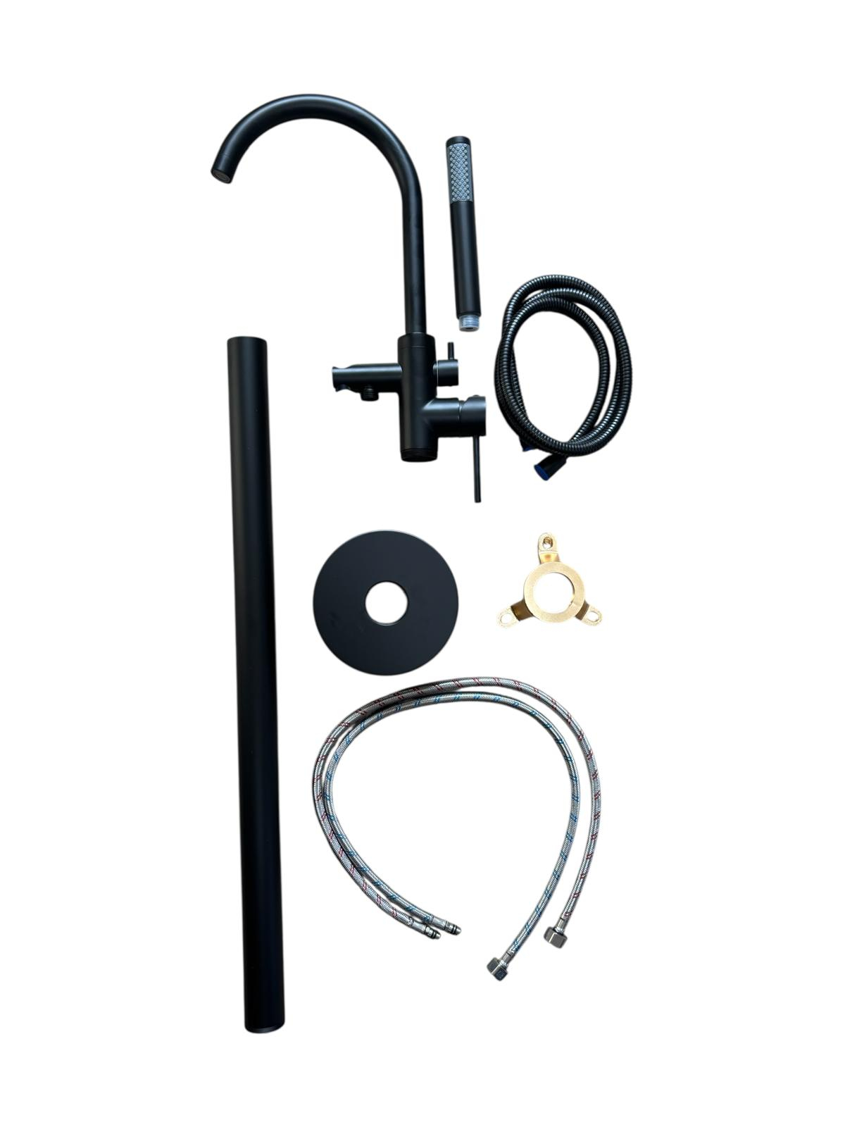 AVI-4919 este o baterie cu montaj pe pardoseală, concepută pentru băi moderne cu cadă freestanding. Finisajul negru mat aduce un aspect elegant, iar înălțimea de 110 cm asigură o utilizare comodă lângă cadă. Pachetul include capul de duș și furtunul, pentru o instalare rapidă.