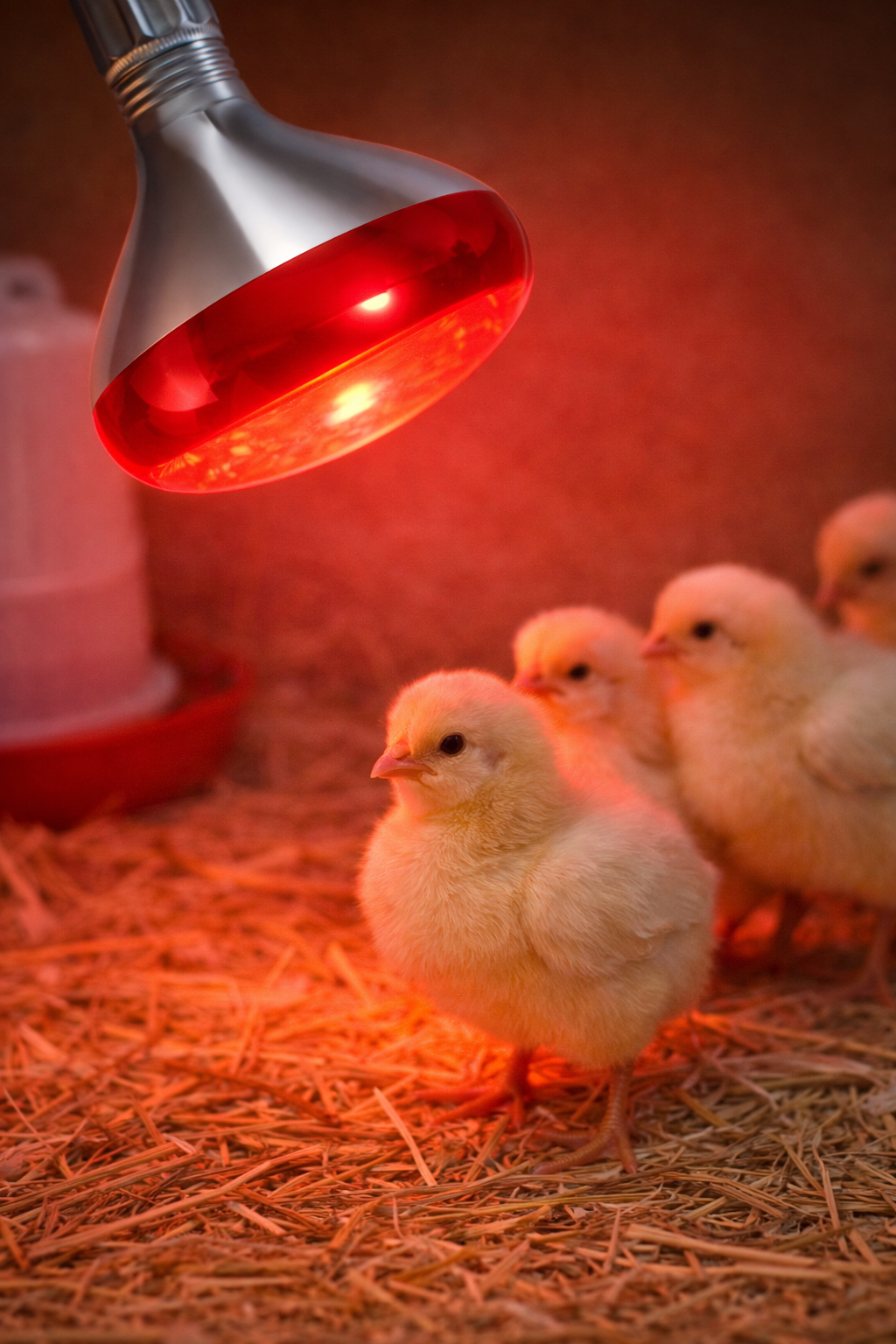 Lumina roșie infraroșu generează căldură eficientă și uniformă, contribuind la menținerea temperaturii optime în primele săptămâni de viață ale puilor. Spectrul roșu ajută la reducerea stresului în rândul păsărilor, comparativ cu iluminarea albă intensă.