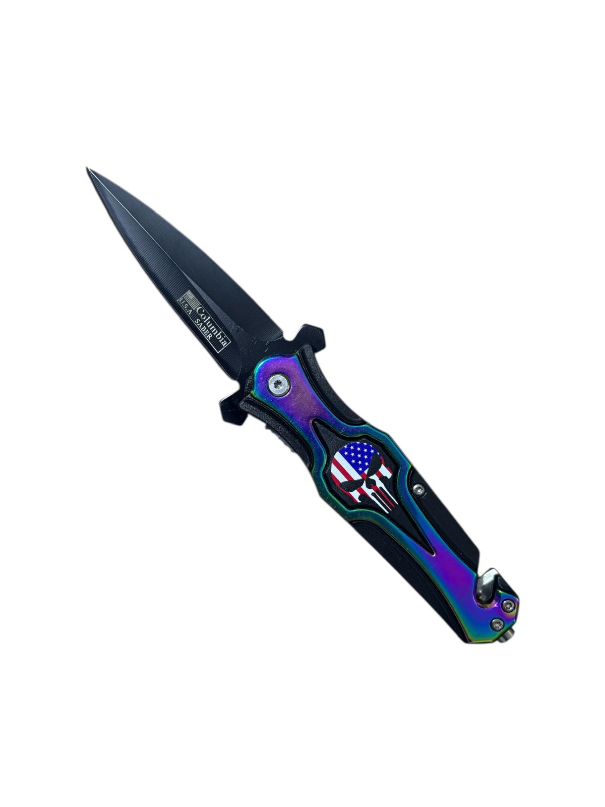 Briceag pliabil multifuncțional, cu lamă de 9.5 cm și accesorii de siguranță integrate (tăietor de centuri și spărgător de geamuri), ideal pentru EDC, auto și situații de urgență.