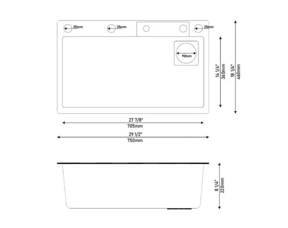 • Dimensiuni cuvă: 750 x 460 x 220 mm