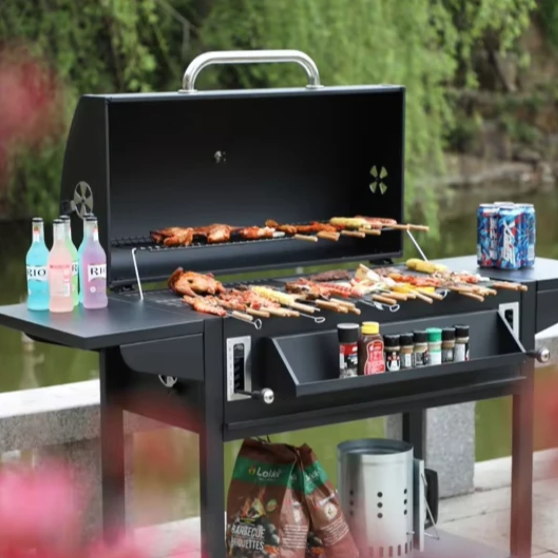 • Funcționează cu cărbuni – pentru un gust autentic și intens