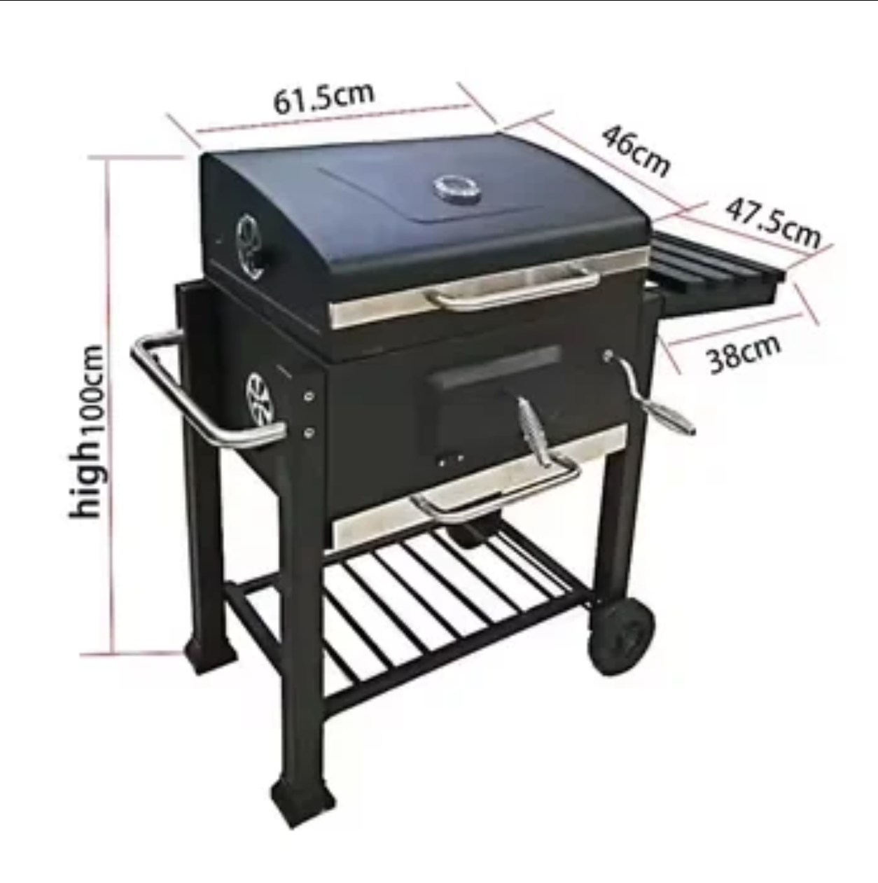 Grătar de grădină AVI® cu cărbuni, suport lateral și termometru, 100 x 61.5 x 46 cm, AVI-4994