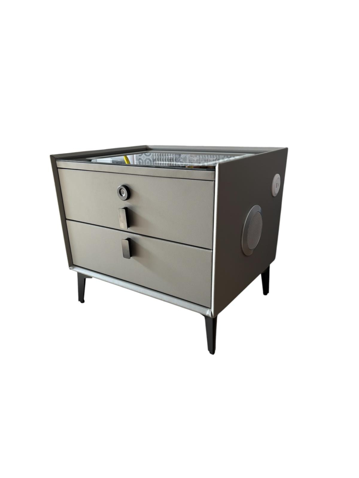 Noptiera Smart cu Iluminare LED, Încărcare Wireless, 2 boxe Bluetooth și securizare sertar cu amprenta, 50 x 40cm, H 45cm, gri, AVI-4875